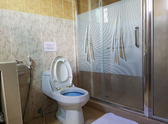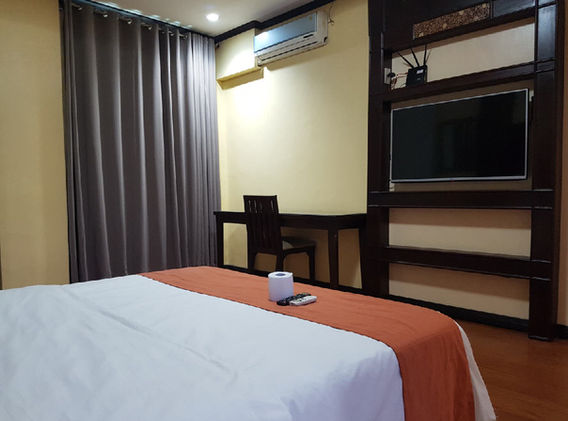 Delux has bathroom, living room, kitchen appliances. 2 air-cons, 2 TVs, Wifi router, refrigerator.